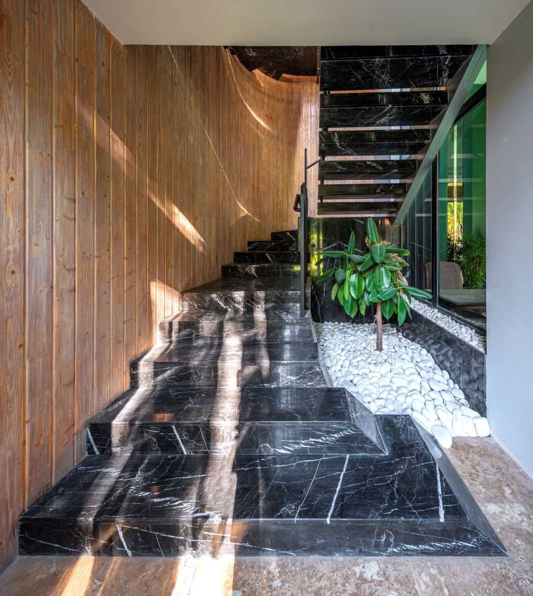 In the ideation process, an effort was made to extend the green space and its beautiful environment into the building so that the continuity of the visual view with the building elements is not distorted and we do not set boundaries for the building. This was achieved by creating very large windows, high ceilings, a green roof, a fire temple on the roof, creating transparency, as well as using appropriate materials and fluid forms in the space.