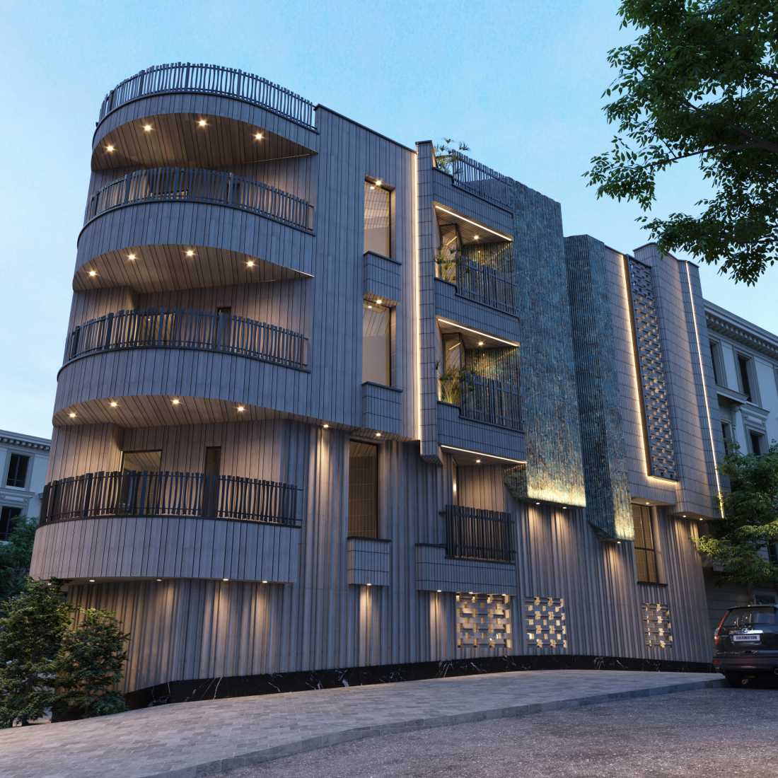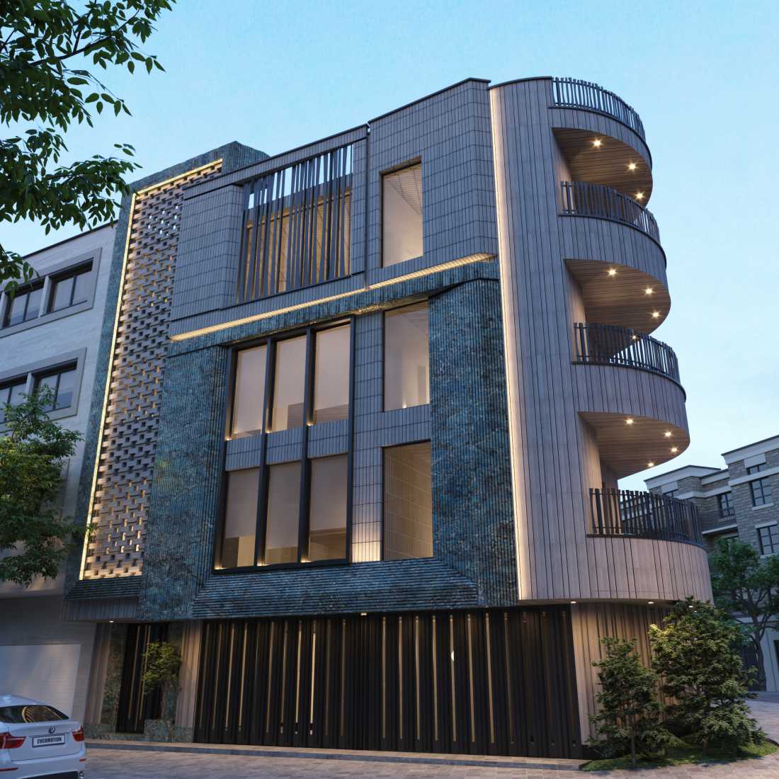 The effort that was made was to play with the arrangement of bricks, so that the sunken parts with voluminous forms, although they are the same material and color, but with the subtle volumetric play of bricks, the shape is different here. The green volume was created using the existing features in the structure, which of course was slightly arranged to take the hardness of the concrete features.