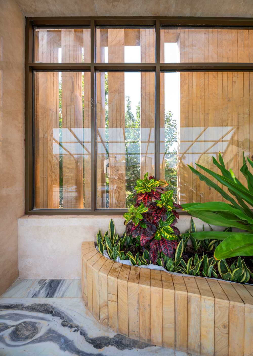 Both green space was brought inside and the quality of the view was promoted by expanding the view to new angles and mountain and garden views.