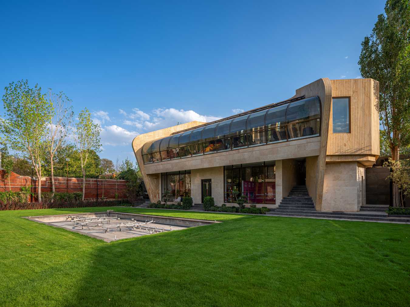 The Landscape Building project was the result of a change from the routine requirements in all villa buildings to just a service hall and kitchen, which resulted in a change in the attitude and thought path of architects.