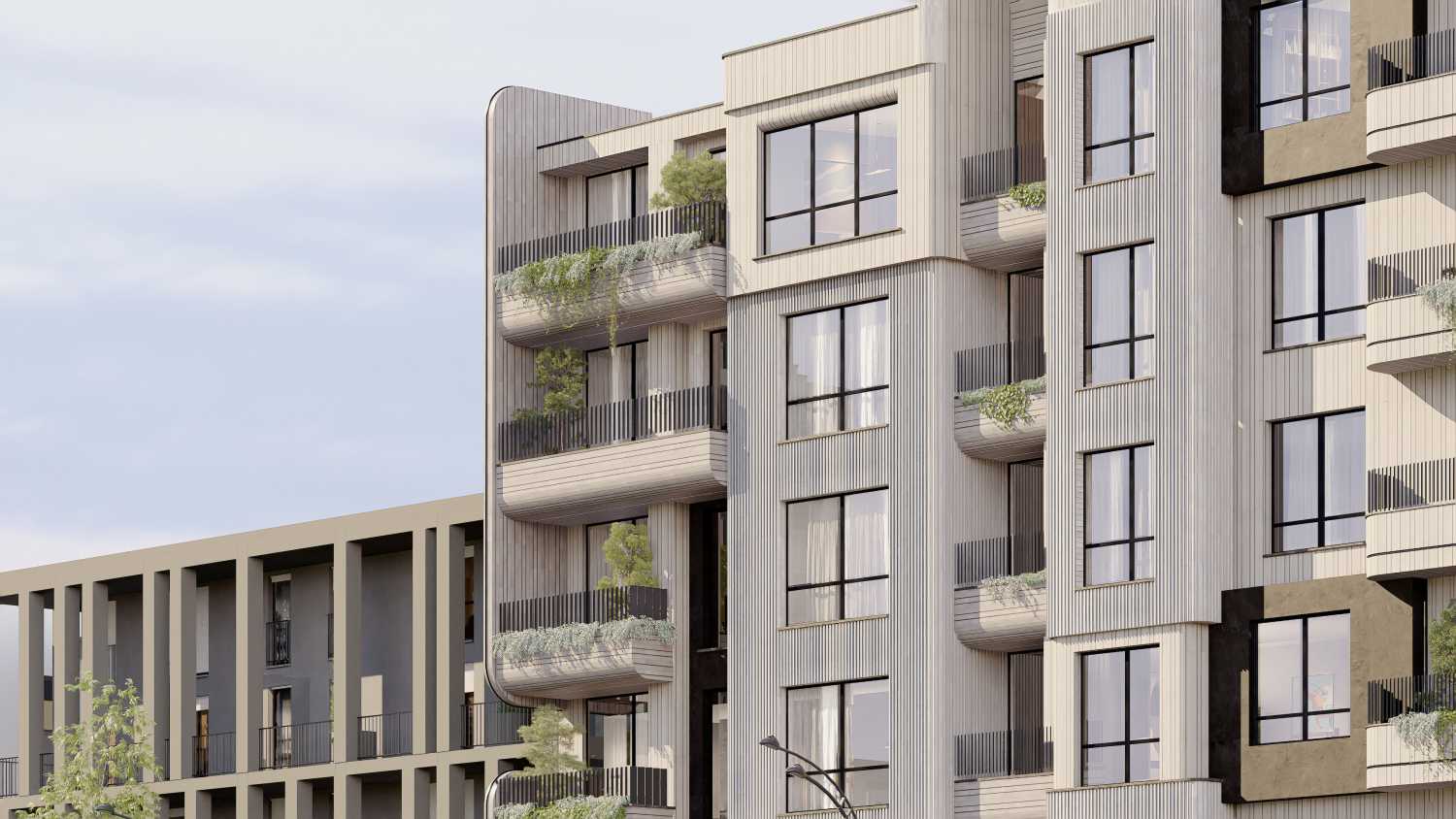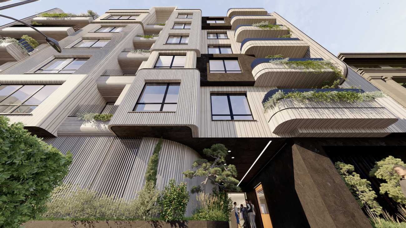 In this facade, which is based on vertical bricks and the soft lines of the terraces;
